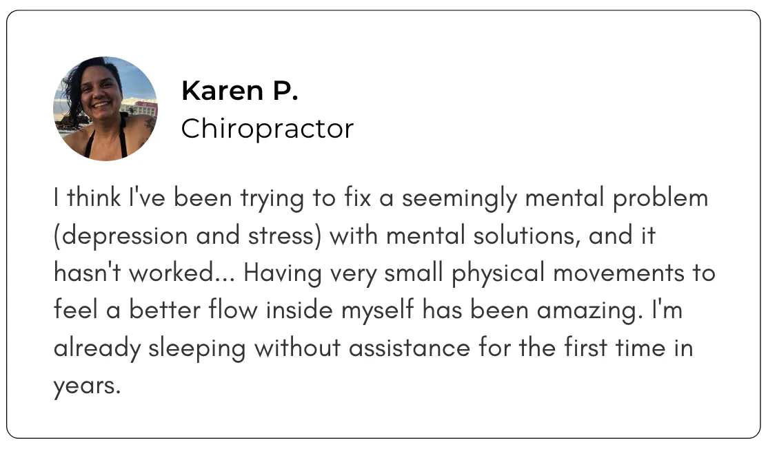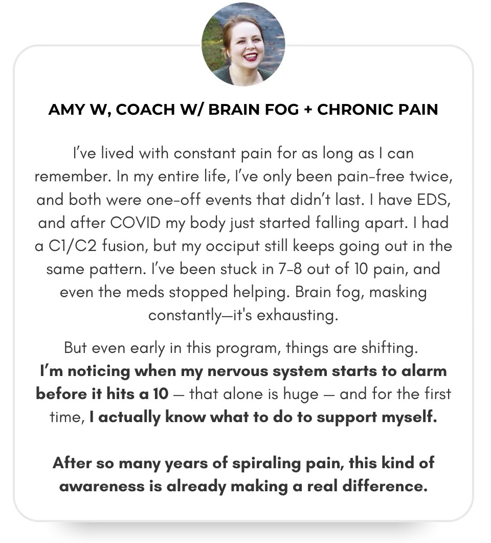 Wellness seekers who’ve cycled through PT, massage, brain-retraining, breathwork (and more) but keep bouncing back into flare-ups or fatigue.