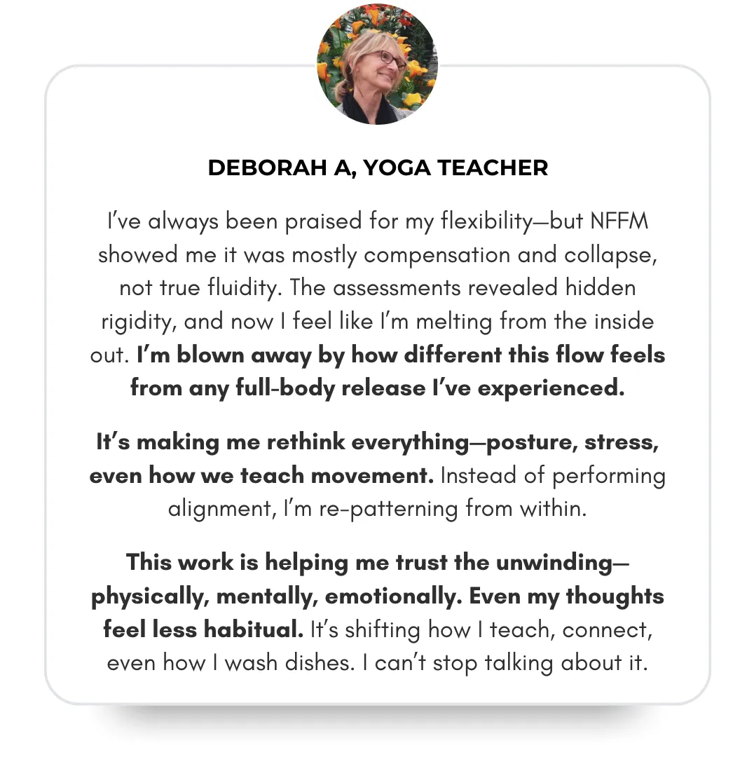 Over 80+ lessons, fascia release sequences, somatic rewiring tools, and energetic integration practices.